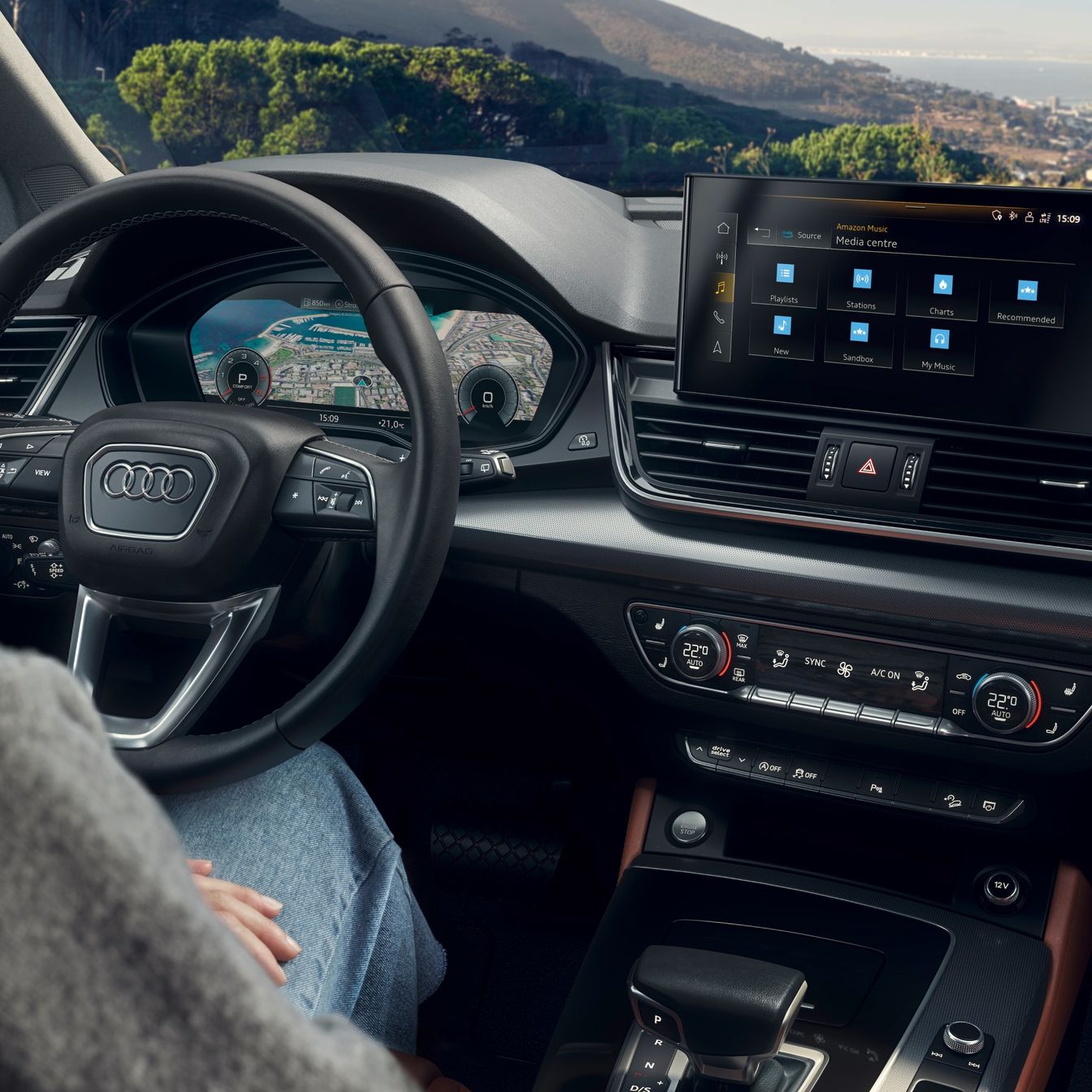 Les parkings à proximité s’affichent directement dans la navigation, avec leurs horaires, la disponibilité et les prix grâce à Audi connect.